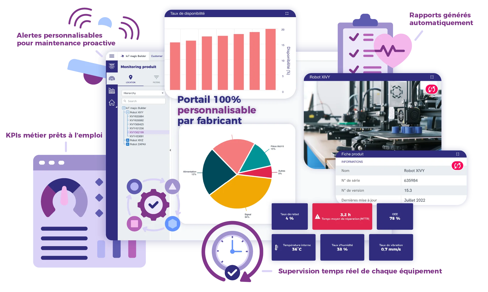 Rassemblez toutes les informations issues de vos machines dans une seule plateforme, accessible par vos équipes produit, maintenance, SAV, support et même vos clients.